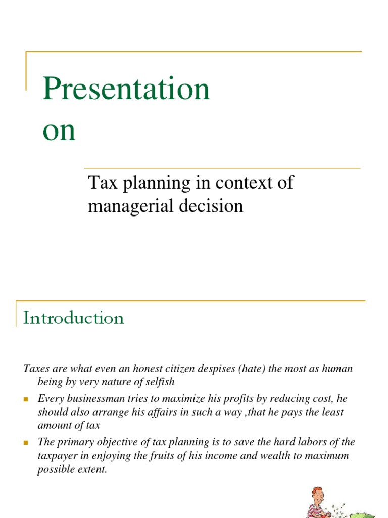 Tax Planning allows a taxpayer to make the best use of the different tax exemptions deductions. Basic Characteristics of a Tax. Tax planning allows all elements of the financial plan to function in sync to deliver maximum tax efficiency.